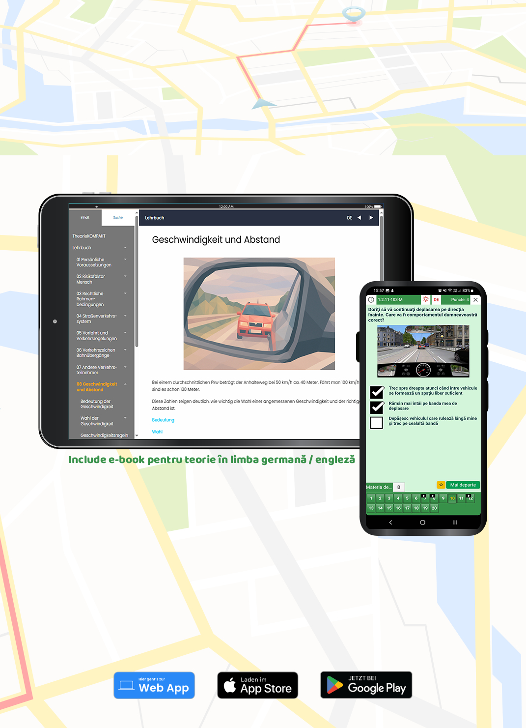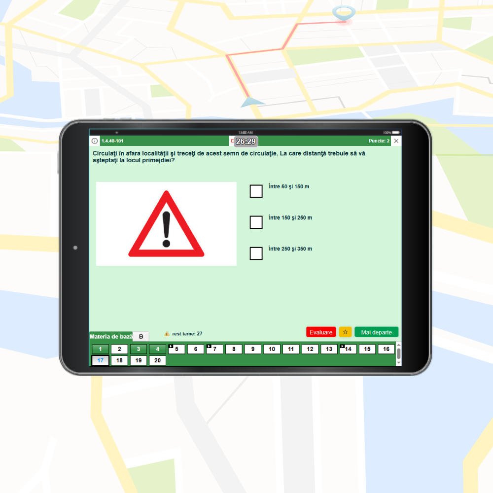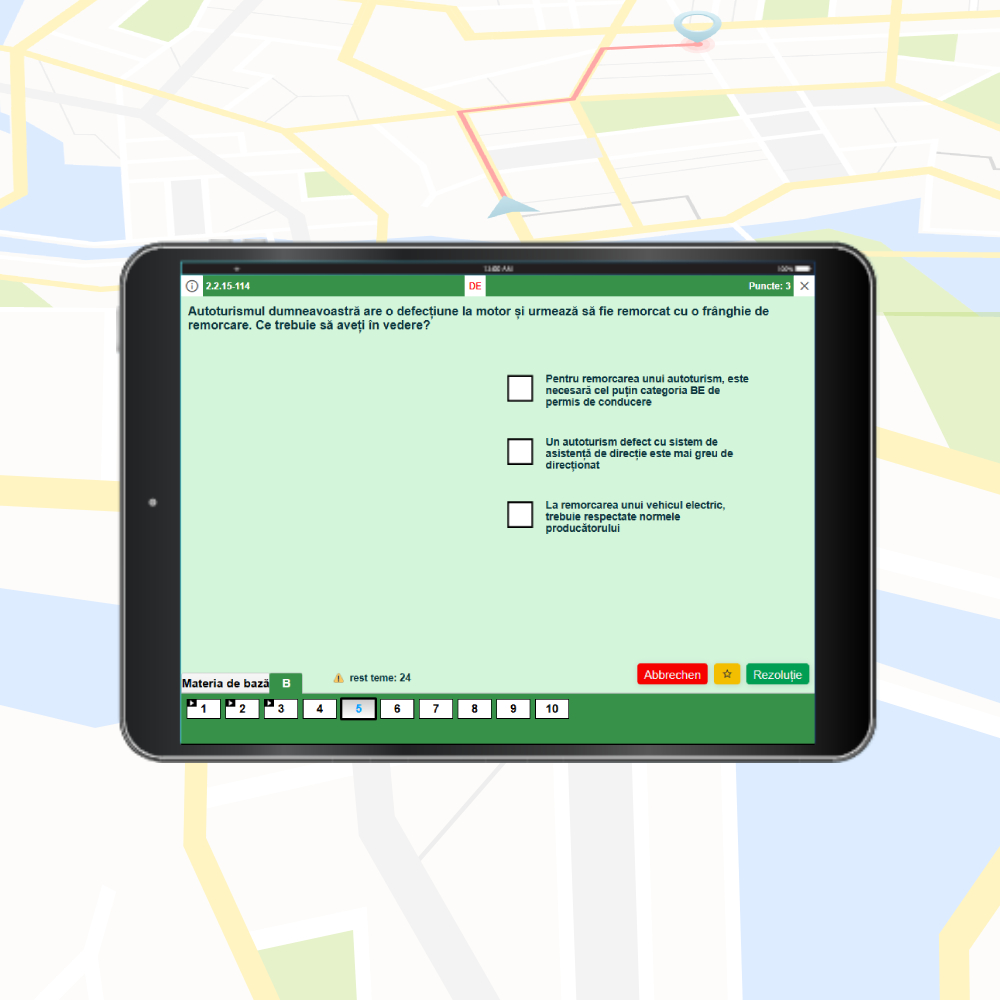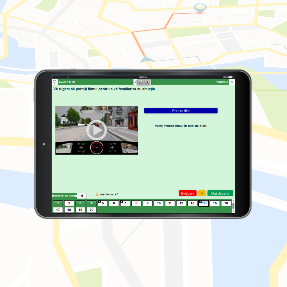 Exersează toate întrebările oficiale pentru categoria B cu aplicația completă pentru școala auto – TheoriePlus, adaptată pentru telefoane, tablete și laptop. Aplicația respectă în totalitate legislația în vigoare, include toate întrebările TÜV / DEKRA în limba română și oferă experiența exact ca la examenul teoretic, astfel încât să fii familiar cu interfața oficială TÜV înainte de ziua examenului.