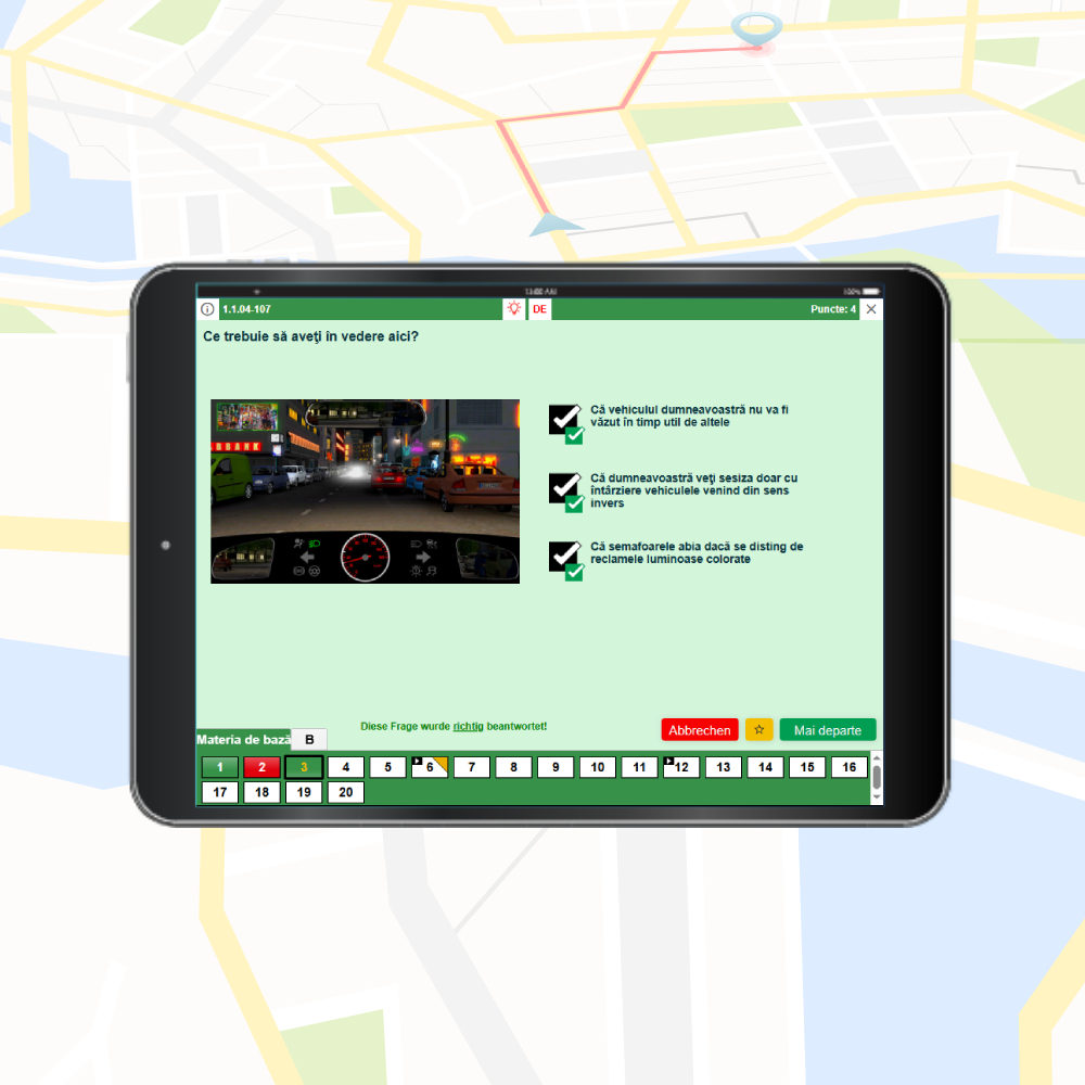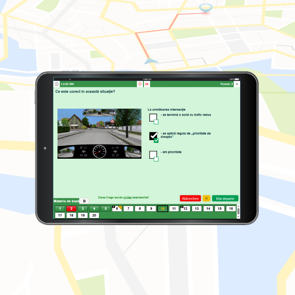 Pregătirea completă pentru examenul teoretic Germania – Chestionare auto categoria B limba română. Acces complet timp de 1 an – plătești o singură dată și poți folosi aplicația pe toate dispozitivele timp de 12 luni, fără abonament sau costuri suplimentare.
